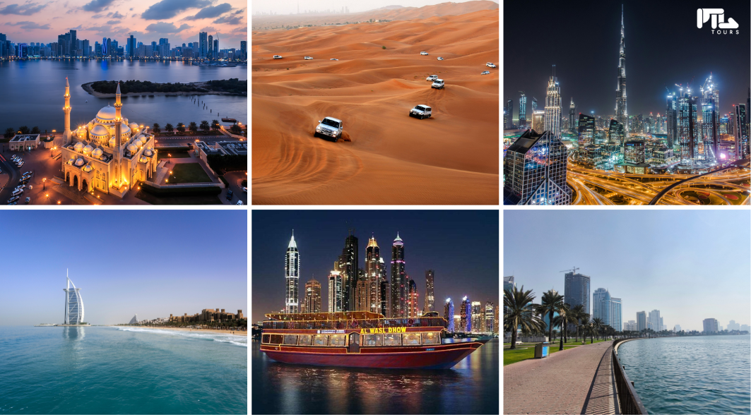 Dubai I Burj Khalifa I Abu Dhabi I Sharjah I Passeio de jipe no deserto I Passeio de Dhow I Costa Este | Miracle Garden | Global Village